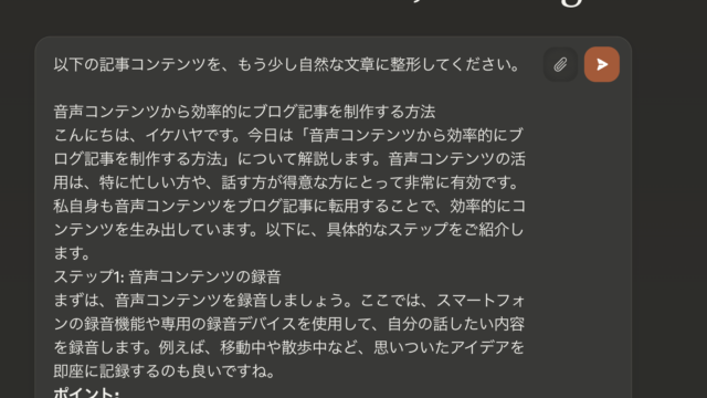 とはいえ、そこらへんもChatGPTやClaude側でうまく読み取ってくれるので、基本的には修正は不要です。はっきりと話すことで、精度を上げることができます。