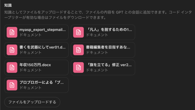 同時に、過去記事などの原稿データを「知識」に入れておくと、なお精度が高まるでしょう。ぼくは30万字くらいあるメルマガの原稿や、これまでの書籍原稿も突っ込んでます。たぶん……参考にしてくれてると思います!